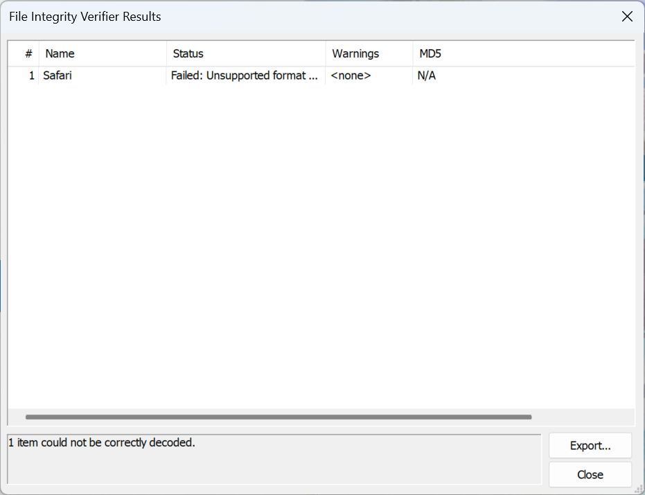 本文提供的方法与结论仅供参考。此方法可有效识别并排除部分存在问题的专辑,但无法保证通过验证的专辑绝对无误。若您获取了 Apple Music 的 ALAC 音频文件,最可靠的验证方式仍是与其他无损且已知无音频水印与后处理的音源(如通过对比未压缩音轨的 MD5 哈希值)进行交叉比对。在撰写本文时,我对一些文件进行了此类交叉验证,目前尚未发现响度匹配而 MD5 值不同的案例,欢迎评论区补充拍砖。